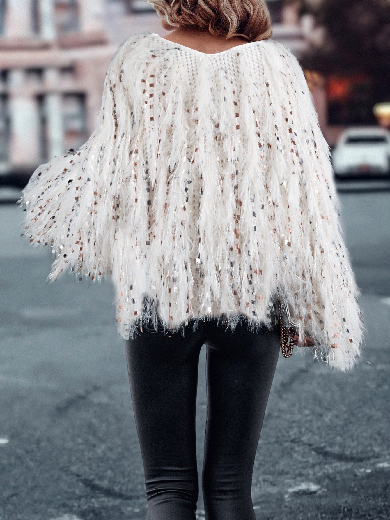 Beige Space Dye Fuzzy Trim Batwing Sweater
