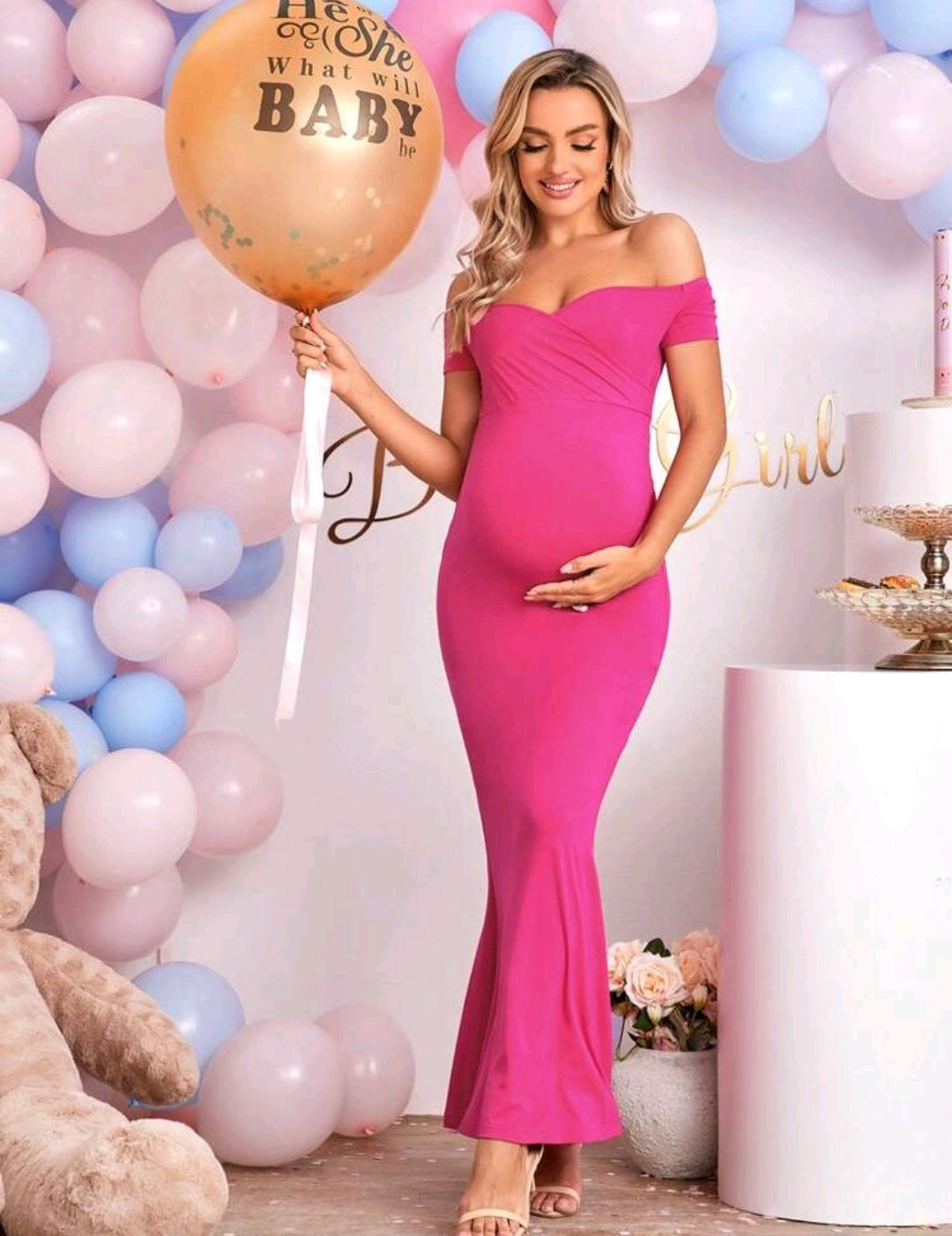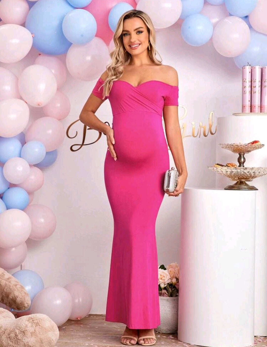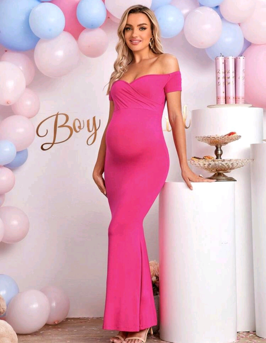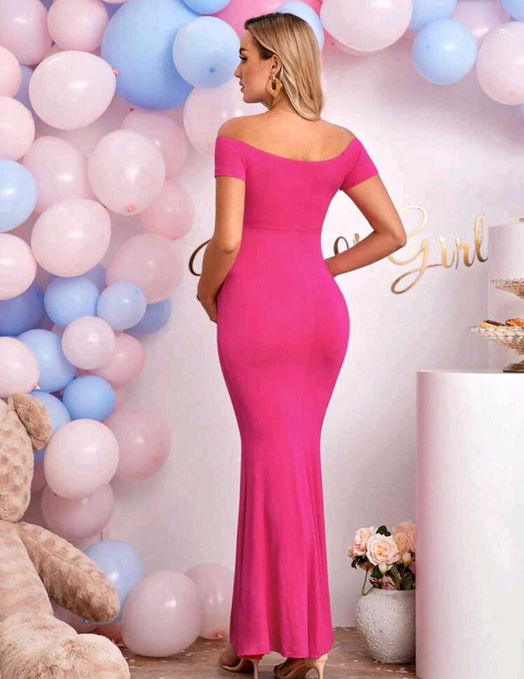 Cherise Pink Off Shoulder Mermaid Hem Dress