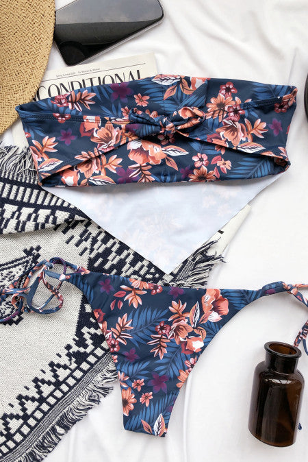 Floral Hanky Hem Bandeau Tie Side Bikini Swimsuit