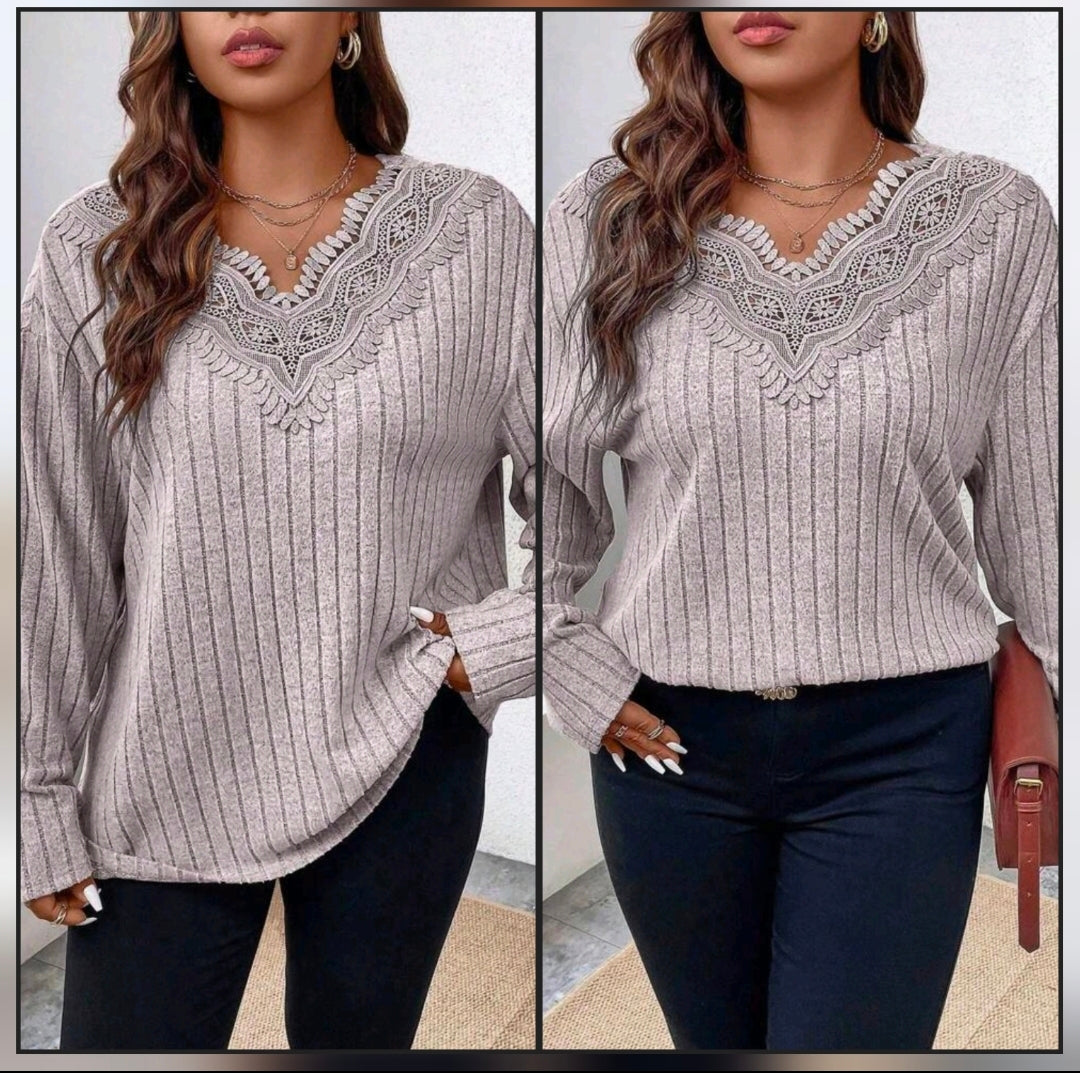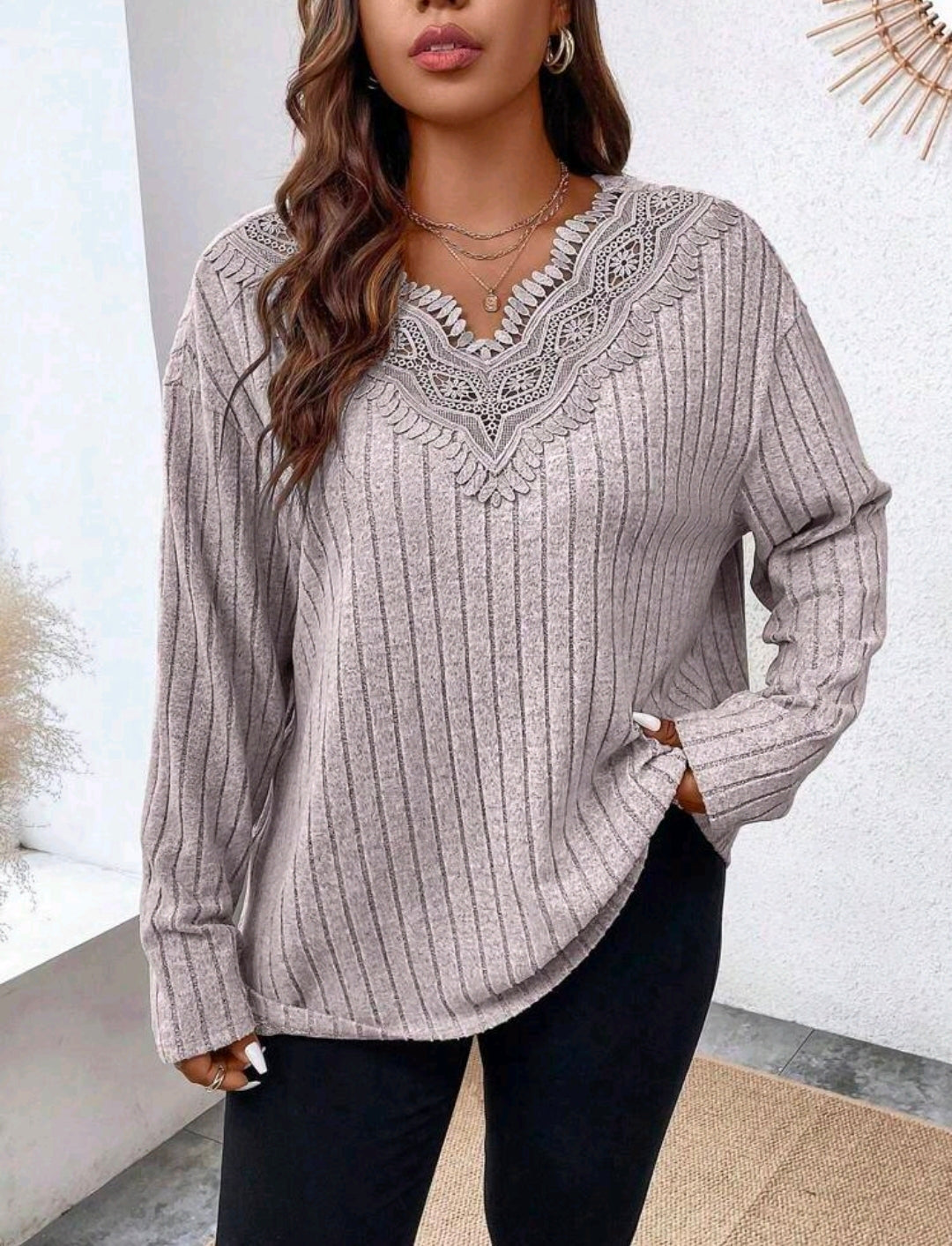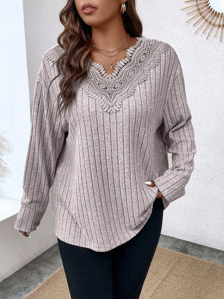 Pink Plus Size Lace Patchwork Drop Shoulder Top